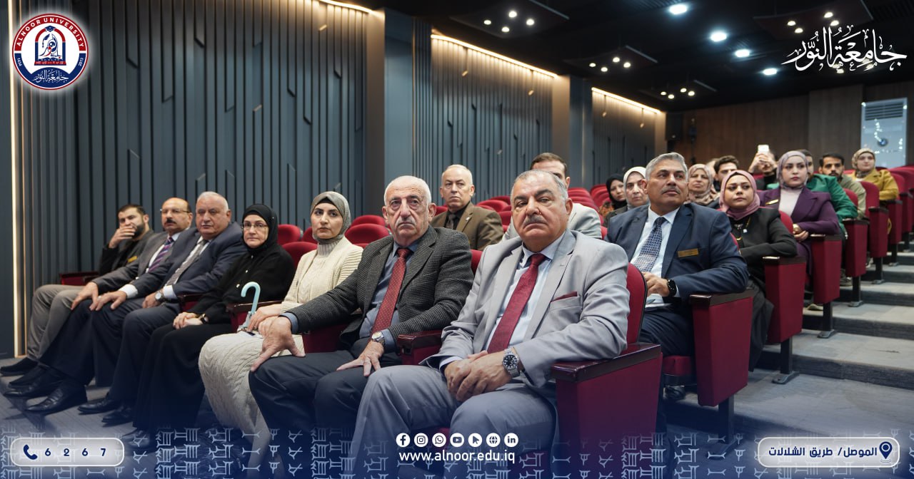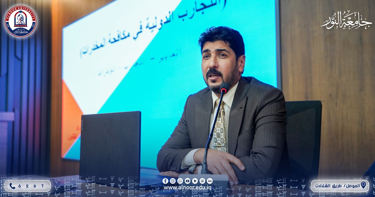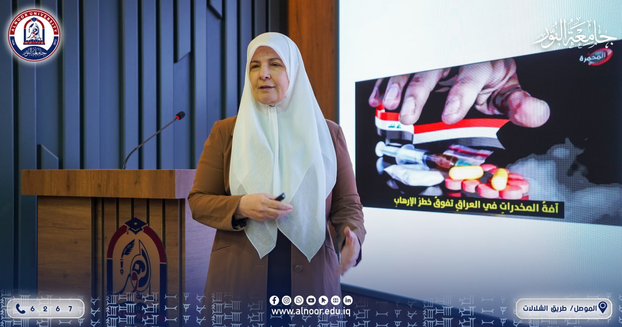وحضر جلسة الافتتاح الأستاذ الدكتور إسماعيل عبد الوهاب المساعد العلمي لرئيس الجامعة، إضافة إلى عمداء كليات التربية والقانون والعلوم السياسية والتقنيات الإدارية، فضلاً عن المستشار العلمي للجامعة.تستمر فعاليات الاسبوع الخاص بمكافحة المخدرات على مدى خمسة ايام لغاية يوم الخميس الموافق 2025/11/20 بمشاركة 27 باحثا من جامعة النور وجامعات محافظة نينوى والدوائر المعنية حيث يلقى 13 محاضرة وتقام 7 ورش تعليمية .اضافة الى معرض للملصقات التوعوية ..