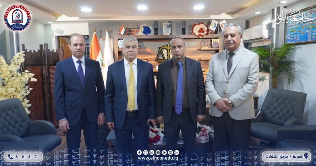 وتأتي هذه الزيارة في إطار حرص كلية القانون والعلوم السياسية في جامعة النور على توطيد التعاون والانفتاح الأكاديمي مع الجامعات العراقية، بما يسهم في رفع مستوى الأداء العلمي وتعزيز جودة التعليم القانوني والسياسي.